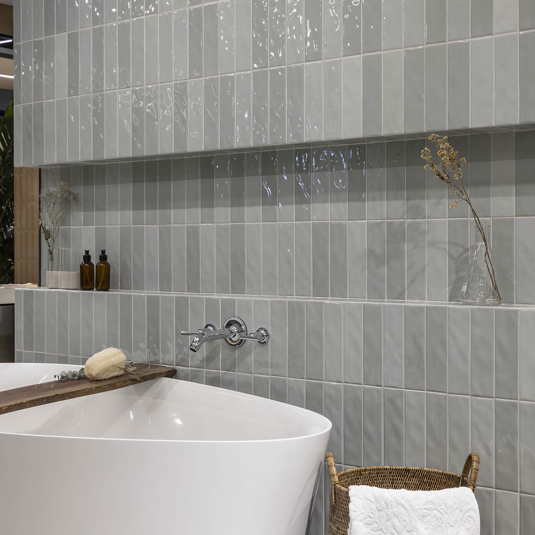 Prisma is a ripple textured, glossy ceramic range. Shade variations throughout the tiles break up the colour for a modern take on the zellige look.