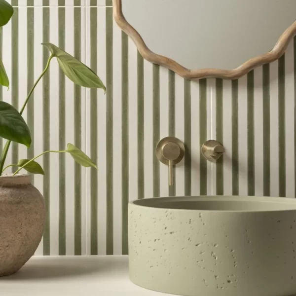 Stripes take centre stage in the Promenade collection, with watercolour-inspired brushstrokes in three timeless shades.