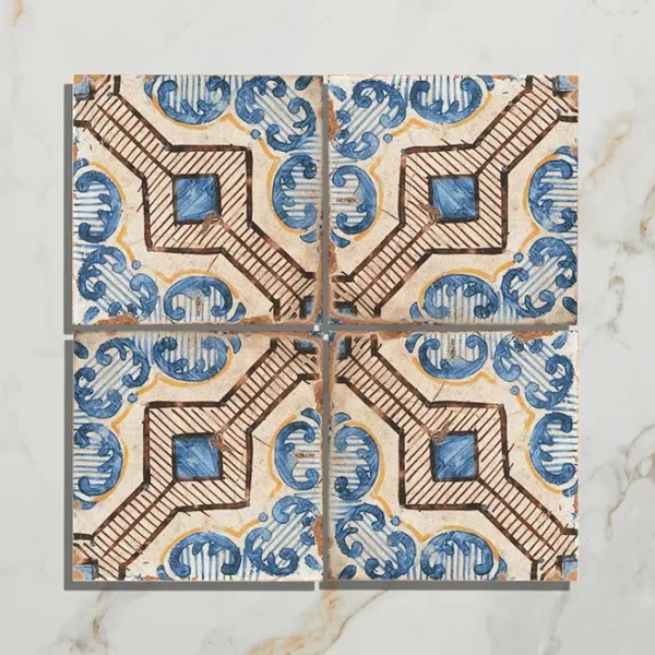 Inspired by traditional designs found in Italy and the Mediterranean, this porcelain tile works equally well on the floor, or on a wall as a feature.